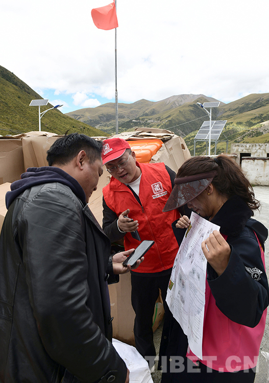 這是北京建藏援藏工作者協(xié)會志愿服務(wù)組人員張建(中)在西藏那曲市索縣西昌鄉(xiāng)指導(dǎo)牧民群眾用手機(jī)掃碼進(jìn)行高原撿拾車的視頻學(xué)習(xí)(唐召明2021年9月14日攝)