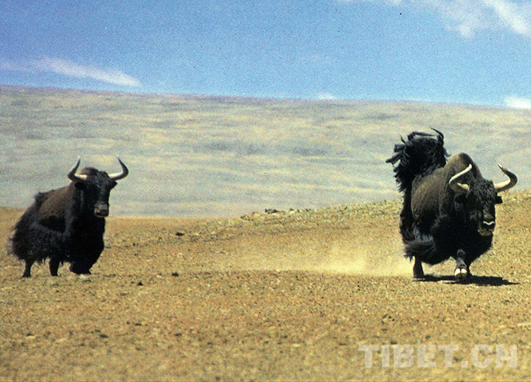 性情強(qiáng)悍的野牦牛傳宗接代的方式也是驚心動(dòng)魄的。每年的七八月份是野牦牛的發(fā)情交配季節(jié)。雄性野牦牛相遇,必然展開一場激烈的角斗,勝利者獲得對雌性野牦牛的占有權(quán),戰(zhàn)敗者只能灰溜溜地落荒而逃。