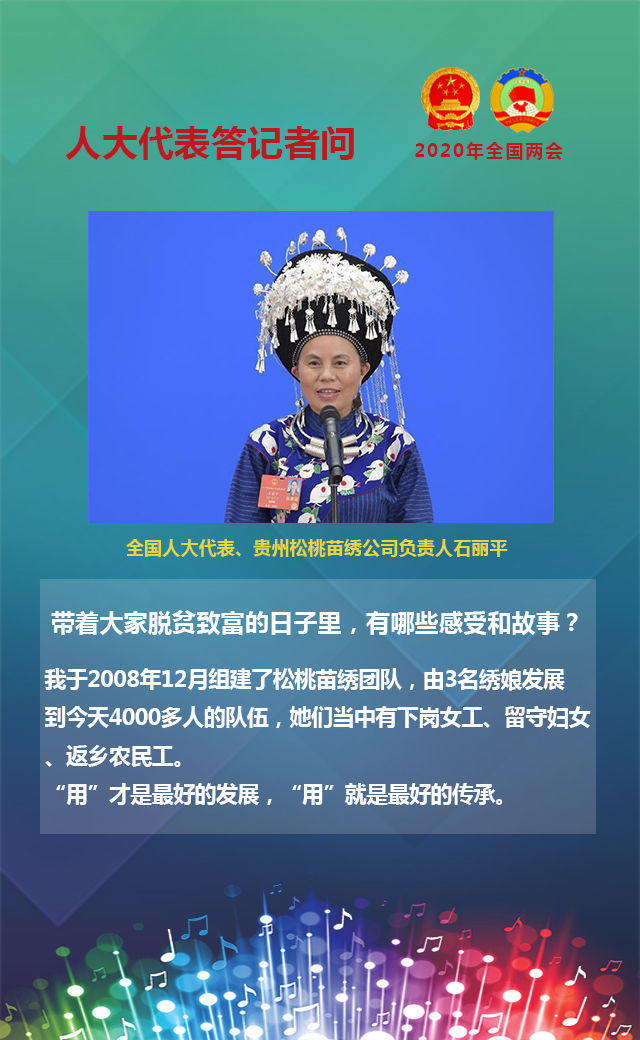 全國人大代表、貴州松桃苗繡公司負(fù)責(zé)人石麗平