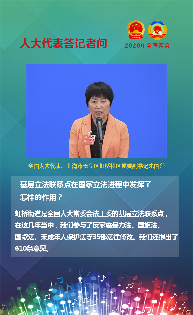 虹橋街道是全國人大常委會法工委的基層立法聯(lián)系點,在這幾年當(dāng)中,我們參與了反家庭暴力法、國旗法、國歌法、未成年人保護(hù)法等35部法律修改。我們還提出了610條意見。