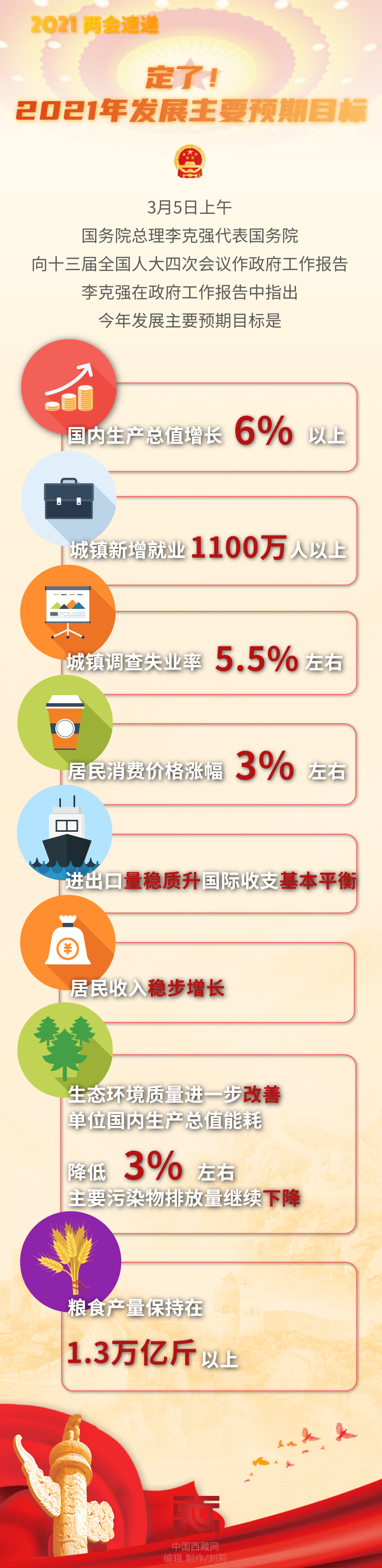 【兩會速遞】定了!2021年發(fā)展主要預期目標公布 國內(nèi)生產(chǎn)總值增長6%以上