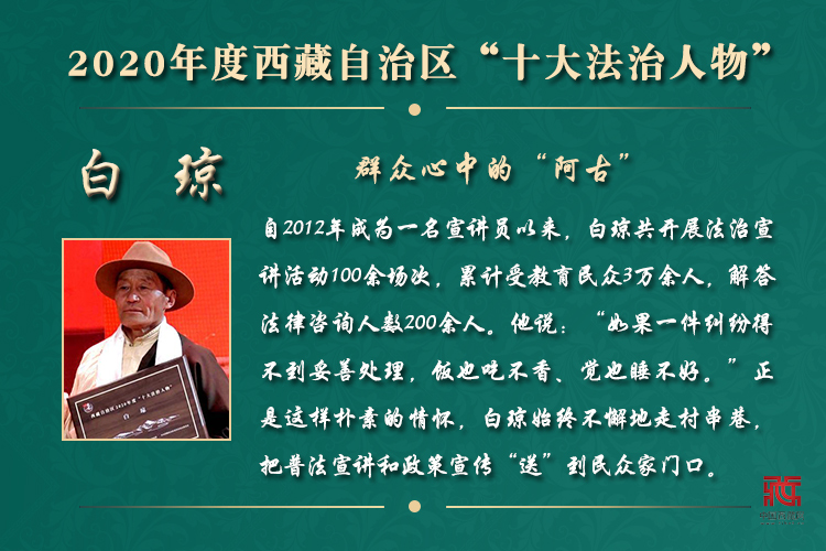 在法治西藏建設(shè)過程中,涌現(xiàn)出一大批辛勤付出、任勞任怨、一心為民、敢于亮劍、影響廣泛、群眾認(rèn)可的典型人物。他們長(zhǎng)年累月奔波在基層一線,活躍在田間地頭,踐行法治理念,彰顯公平正義,在高原大地傳播法治精神,為各族群眾送去法治溫暖。(中國(guó)西藏網(wǎng) 責(zé)編/常薇薇 美編/朱翠平)