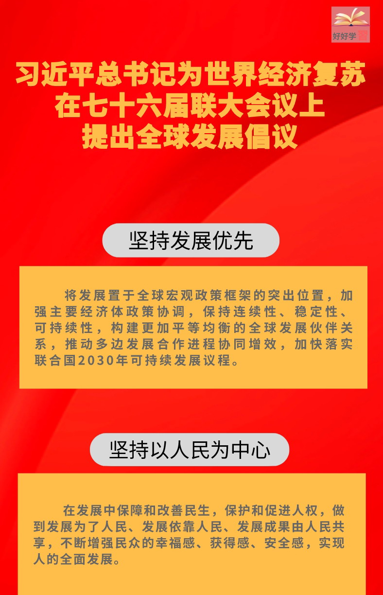 長圖|習(xí)近平總書記為世界經(jīng)濟(jì)復(fù)蘇在七十六屆聯(lián)大會議上提出全球發(fā)展倡議