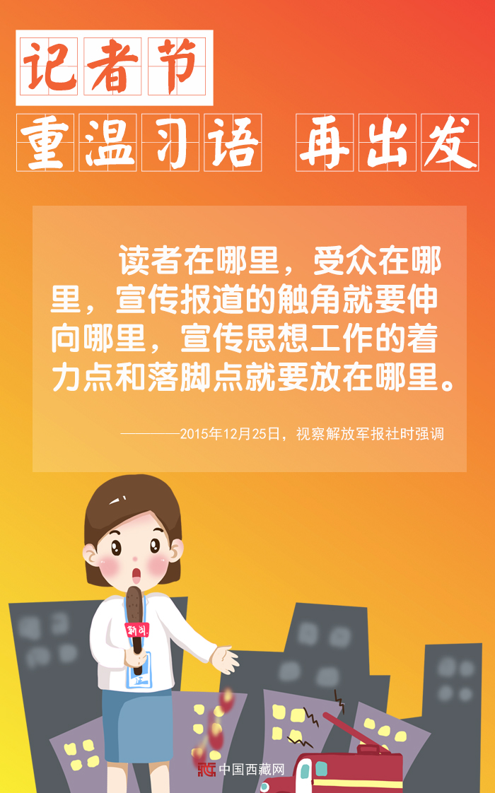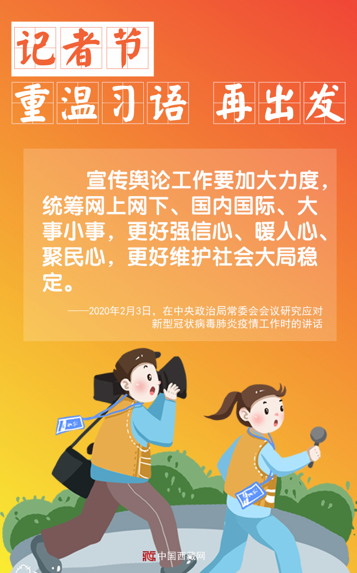 此刻,節(jié)日的主角們或在新聞現(xiàn)場(chǎng)忙碌著,或在抗疫一線記錄著,或在奮筆疾書書寫著……一直以來,習(xí)近平總書記十分關(guān)心新聞工作者,并提出了許多殷切希望。在這個(gè)特別的日子里,讓我們重溫總書記囑托,強(qiáng)化責(zé)任擔(dān)當(dāng)再出發(fā)。(中國西藏網(wǎng) 編輯/周晶 制作/許娜)