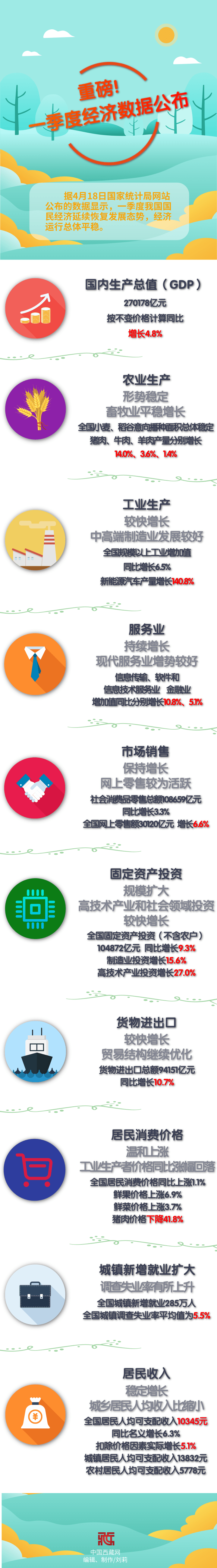 重磅!一季度經(jīng)濟數(shù)據(jù)公布 GDP同比增長4.8%