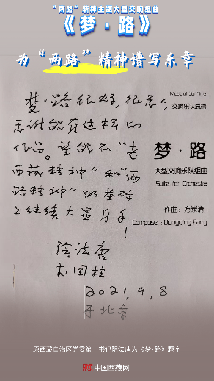 創(chuàng)作團隊三次深入西藏、四川、青海等省區(qū)市的二十多個“兩路”相關(guān)歷史地域,拜訪數(shù)十位民族民間器樂演奏、聲樂演唱、藏戲表演藝術(shù)家和國家級非物質(zhì)文化遺產(chǎn)傳承人,對藏族風(fēng)格音樂素材進行詳盡細(xì)致的采集,從中國愛樂樂團演奏家們的傾情演奏,到四川省甘孜藏族自治州金剛寺大殿采聲,從錄制藏族姑娘銀鈴天籟般的嗓音,到83歲高齡的國家級非物質(zhì)文化遺產(chǎn)傳承人的獻唱山歌……《夢·路》讓大型交響樂和原生態(tài)聲音融合、碰撞、組合,用音符刻畫了中華筑路英雄馳騁世界屋脊的偉大樂章。(中國西藏網(wǎng) 編輯、制作/王茜 供圖/方崠清)