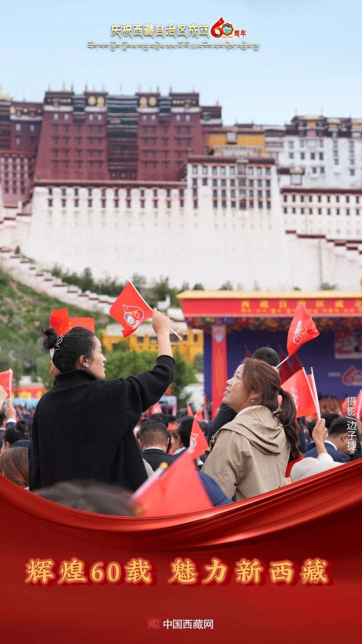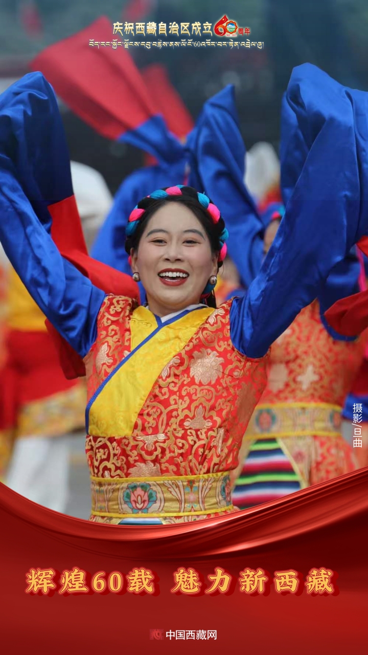 六十年風(fēng)雨兼程,六十年春華秋實(shí),都在這一刻化作人們真摯的笑容與熱烈的歡呼。讓我們祝福祖國(guó)!祝西藏自治區(qū)繁榮昌盛,祝西藏各族人民幸福安康?。ㄖ袊?guó)西藏網(wǎng)攝影/邊子捷 旦曲 趙振宇 制作/王茜)
