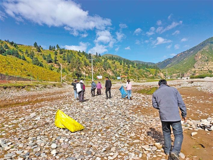 圖為昌都市達日通村村民在撿拾垃圾。記者 周婷婷 攝