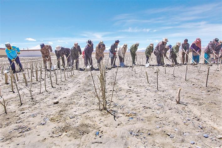 圖為阿里地區(qū)多瑪鄉(xiāng)群眾在植樹(shù)。記者 格桑吉美 攝