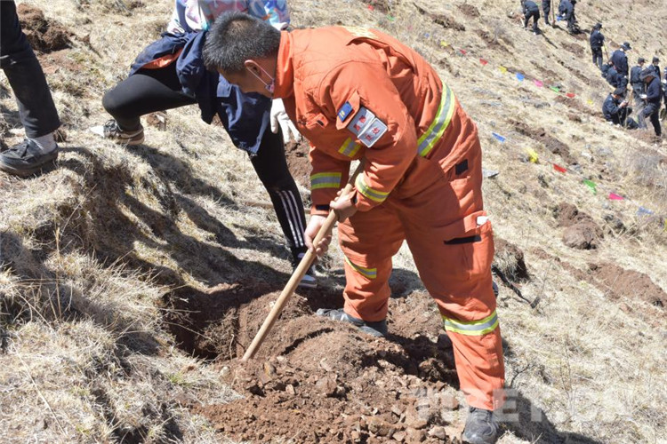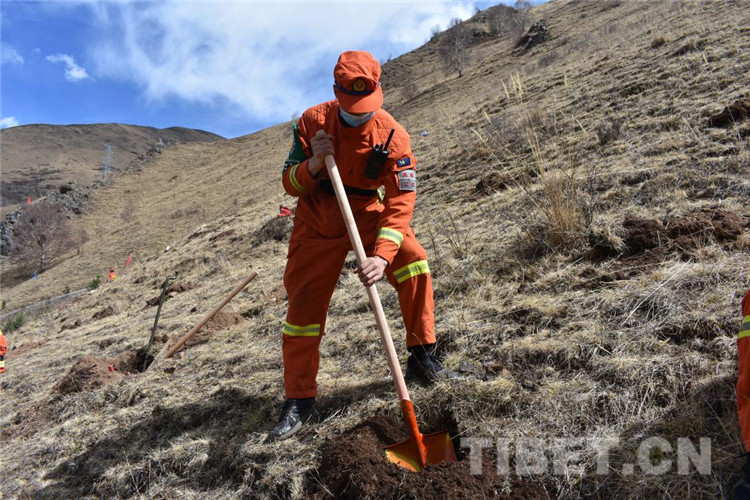 圖為昌都市森林消防支隊(duì)江達(dá)中隊(duì)積極參加駐地植樹活動(dòng)