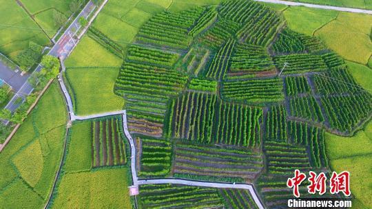 2019年8月24日,航拍江西省安遠(yuǎn)縣鳳山鄉(xiāng)東河村進(jìn)入采收季的紫山藥基地。 (資料圖) 王劍 攝