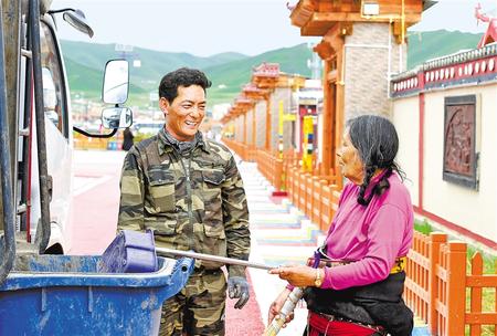 卓瑪加開著垃圾轉(zhuǎn)運車挨家挨戶收運垃圾。