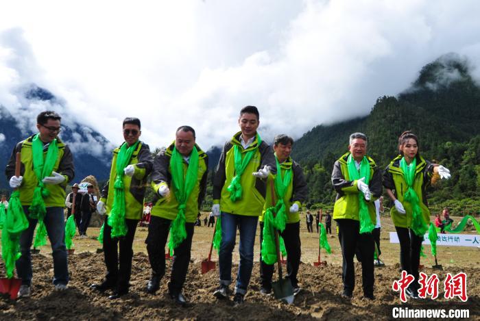 圖為活動(dòng)參與者在西藏林芝米林縣德吉新村播撒草籽?!垈?攝