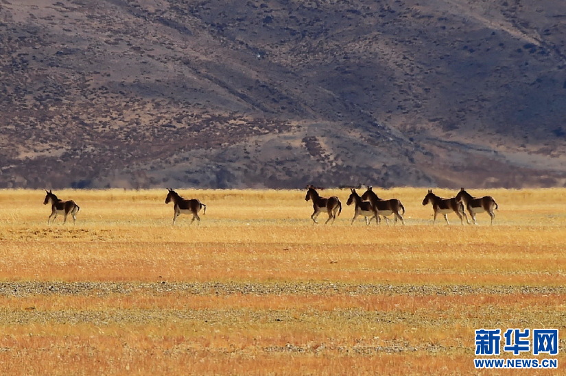 阿里境內(nèi)的藏野驢(10月13日攝)。新華網(wǎng) 張宸 攝