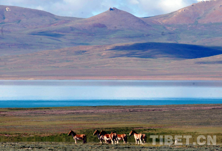 這是在藏北無人區(qū)一湖泊前悠閑生活的國家一級保護(hù)動物藏野驢(唐召明2009年攝)