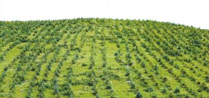 “過去,這片山林就像對面的黑土灘地。”指著對面光禿禿的陽坡(陽坡由于過度光照,屬于非宜林區(qū)),色達(dá)縣林草局技術(shù)員赤橙說,土壤表層脫離后,露出下面的黑土,是沙化嚴(yán)重的一種表現(xiàn)。