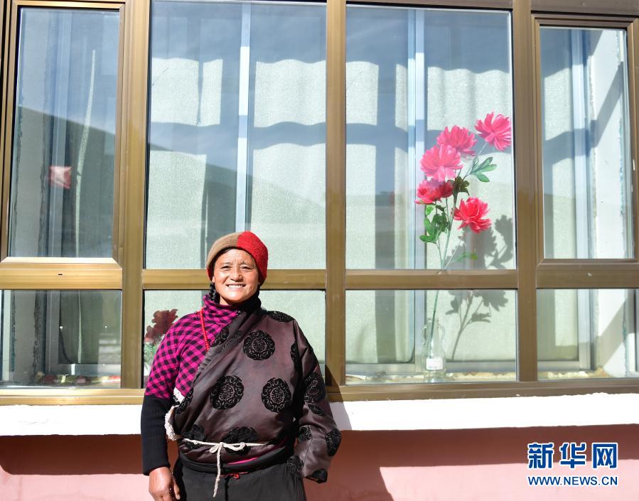 1月11日,隆亞村牧民索吉在搬遷點(diǎn)的新家前留影。新華社記者 張龍 攝