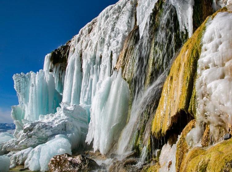 2021年1月23日,祁連山國家公園崗什卡雪峰山腳下的七彩冰瀑,由于溪水中含有多種礦物質,在冬日暖陽的照耀下,散發(fā)出五彩繽紛的綺麗風光,蔚為壯觀。[詳細] -