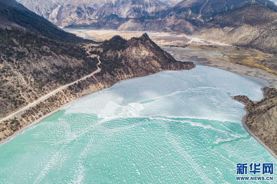 這是2月16日拍攝的然烏湖(無人機(jī)照片)。新華社記者 孫非 攝