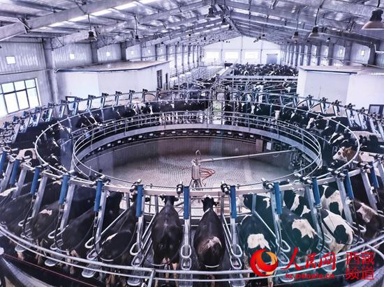 全自動(dòng)轉(zhuǎn)盤式擠奶車間。 李海霞 攝
