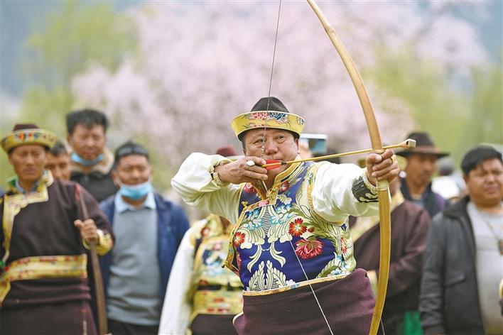 桃花節(jié)期間,巴宜區(qū)舉辦的工布畢秀競技比賽。 王珊 小宜 攝