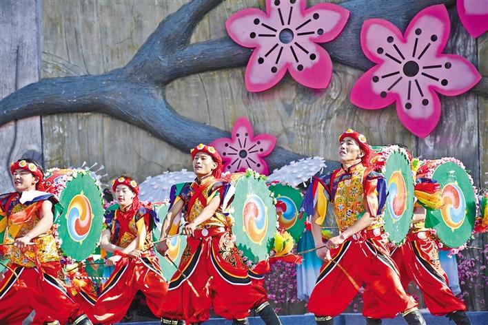 林芝桃花節(jié)開幕式上的文藝表演。張猛 王珊 攝