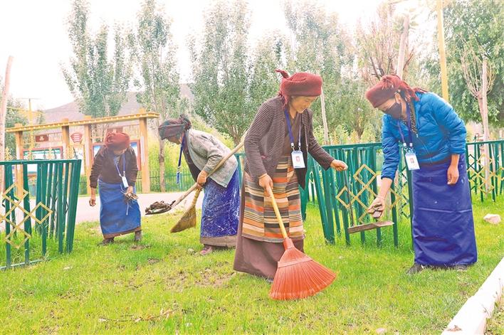 圖為墨竹工卡縣工卡鎮(zhèn)塔巴村環(huán)保監(jiān)督員們?cè)诖驋咻爡^(qū)衛(wèi)生。記者 格桑倫珠 通訊員 洛克 攝