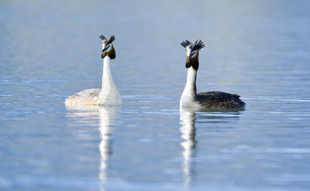 夏日里,鳳頭??和小??在西藏拉薩拉魯濕地國家級自然保護區(qū)水面上嬉戲。[詳細] -