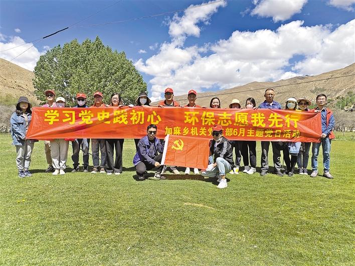 近日,西藏山南市瓊結縣加麻鄉(xiāng)機關黨支部組織開展“學習黨史踐初心、環(huán)保志愿我先行”主題黨日活動?;顒又校w黨員仔細清理路邊、田間地頭垃圾,用實際行動踐行著全心全意為人民服務的宗旨。同時,鄉(xiāng)環(huán)保專干還向周邊群眾宣講環(huán)保小知識,發(fā)放環(huán)保袋,引導每一名群眾爭做環(huán)保志愿者。