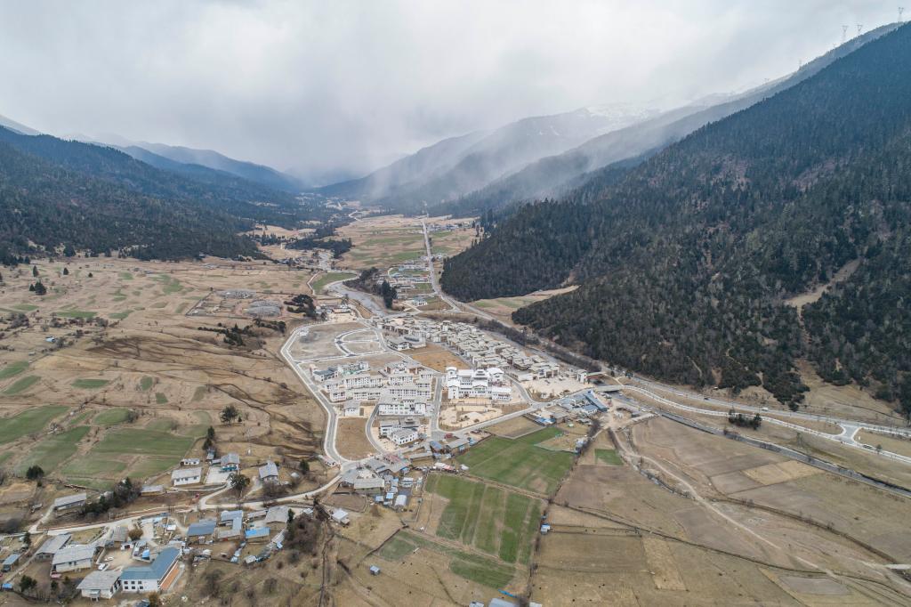 這是川藏公路旁的魯朗國際旅游小鎮(zhèn)風(fēng)光(4月2日攝,無人機照片)。新華社記者 孫非 攝