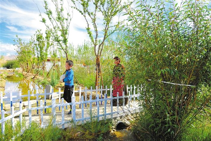 圖為阿里地區(qū)噶爾縣獅泉河鎮(zhèn)加木村村民在綠樹成蔭的村莊里散步。記者 溫凱 洛桑旦增 達(dá)珍 攝