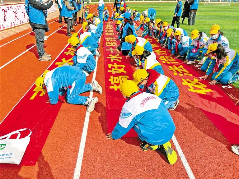 圖為林芝市第二小學(xué)的學(xué)生們在愛護(hù)水土資源宣傳標(biāo)語上簽名。記者 張猛 攝