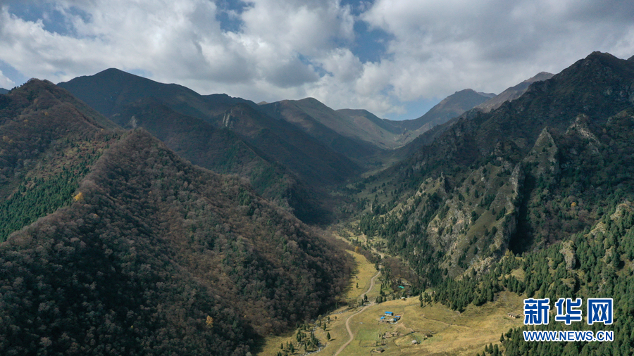 海東市互助土族自治縣北山國家森林地質(zhì)公園扎龍溝秋景(無人機(jī)照片)。新華社記者 張宏祥 攝