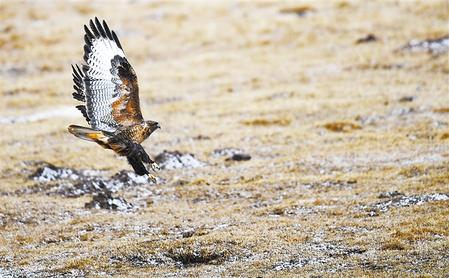瑪曲縣草原上展翅的雄鷹。