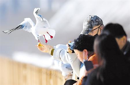 臨夏市大夏河畔,成群的紅嘴鷗和水鳥如約而至,在投食的市民周邊嘰嘰喳喳、競(jìng)相覓食,形成了一幅人與水鳥和諧共處的溫馨景觀。