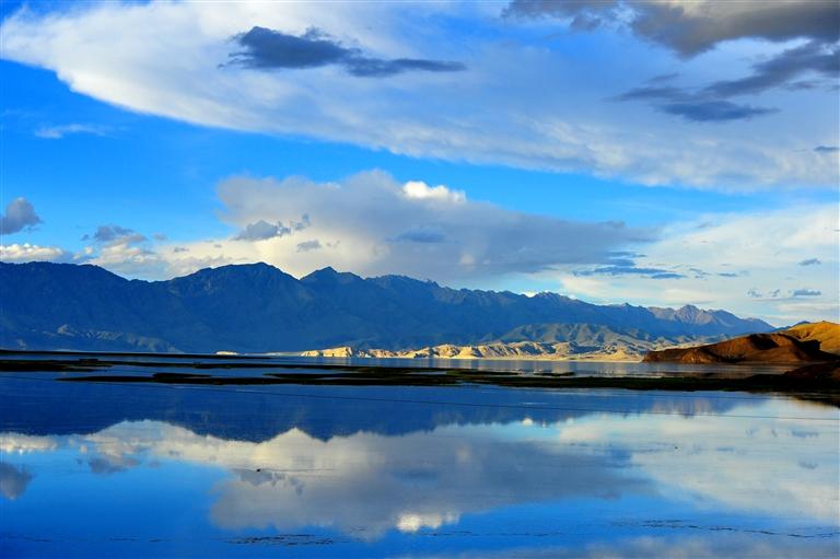 圖為日暮時(shí)分的班公湖。記者 溫凱 攝