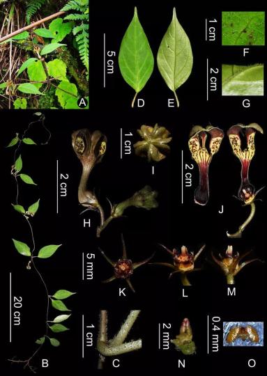 2021年7月中旬至8月初,由西雙版納植物園星耀武研究員率隊的聯(lián)合考察隊,對西藏日喀則地區(qū)喜馬拉雅南坡的維管植物進行了考察和標本采集??疾烊藛T在吉隆縣薩勒鄉(xiāng)發(fā)現(xiàn)一種正處于盛花期的吊燈花屬未知植物。通過解剖拍照、文獻查閱及相似種的模式標本核對后,最終確認為一新種。根據(jù)其模式產(chǎn)地,將其命名為吉隆吊燈花(Ceropegia jilongensis)。