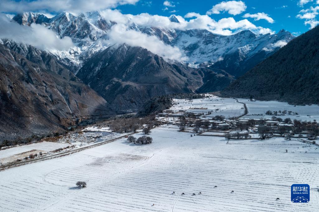 西藏林芝市米林縣派鎮(zhèn)雪景(1月14日攝,無人機照片)。新華社發(fā)(董志雄 攝)