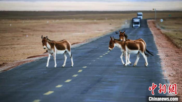 圖為藏野驢穿越青藏公路。何啟金 攝