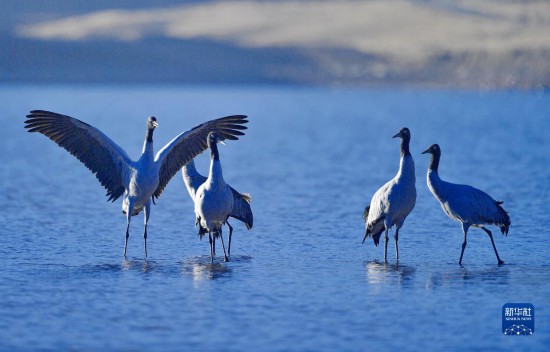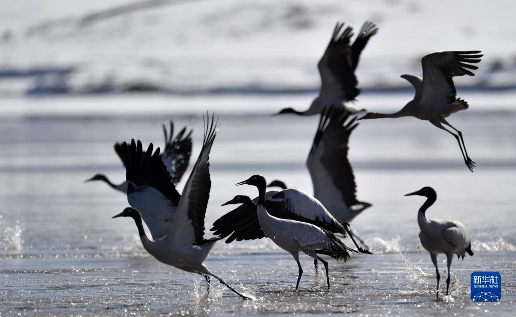 早春時節(jié),在西藏拉薩市林周縣境內(nèi)越冬的黑頸鶴開始為飛往藏北高原產(chǎn)蛋做準(zhǔn)備。黑頸鶴是國家一級保護(hù)動物。據(jù)了解,近年來,西藏自治區(qū)多措并舉實施生態(tài)建設(shè)工程,黑頸鶴數(shù)量逐年遞增,目前西藏黑頸鶴數(shù)量超過萬只。