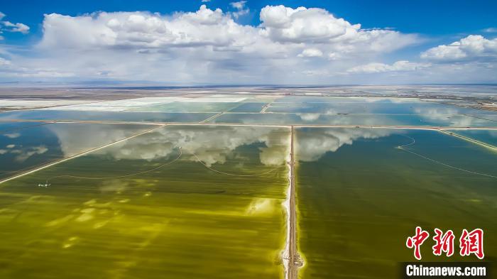 圖為無人機(jī)航拍格爾木市察爾汗鹽湖?!『螁⒔?攝