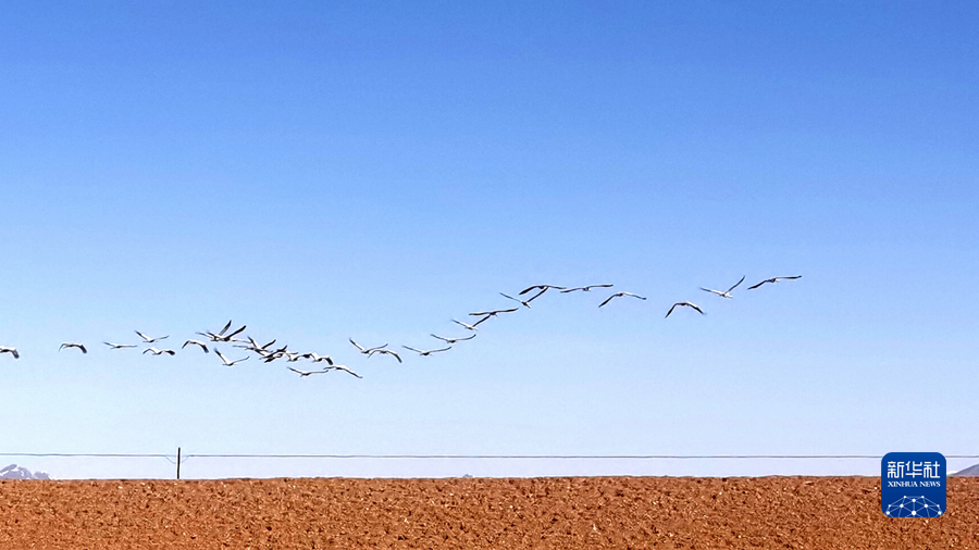 這是3月13日在三江源國家公園黃河源園區(qū)拍攝的一群蓑羽鶴。新華社記者 呂雪莉 攝