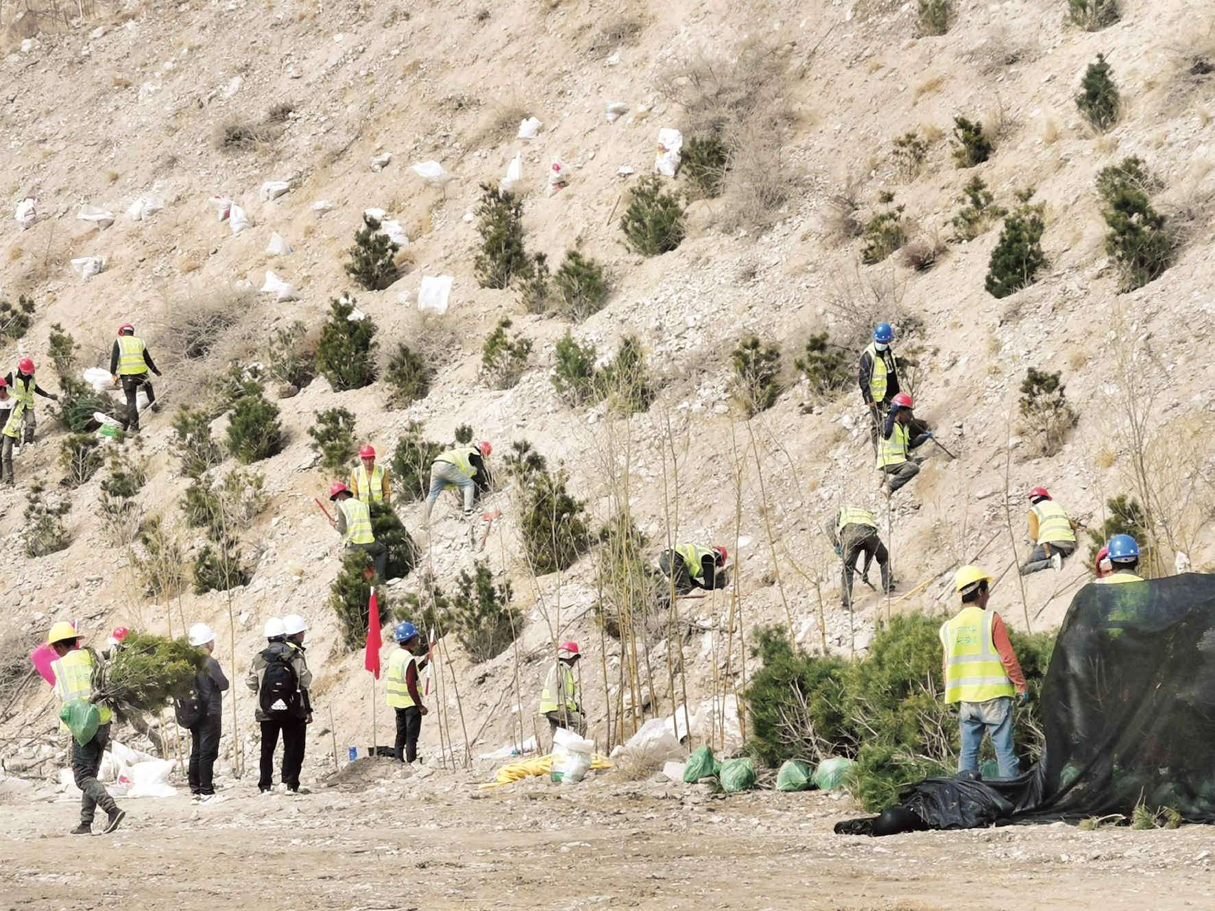 圖為3月24日,西藏國土生態(tài)綠化集團有限公司植樹造林活動現(xiàn)場。 拉薩融媒體記者 滿文妍攝