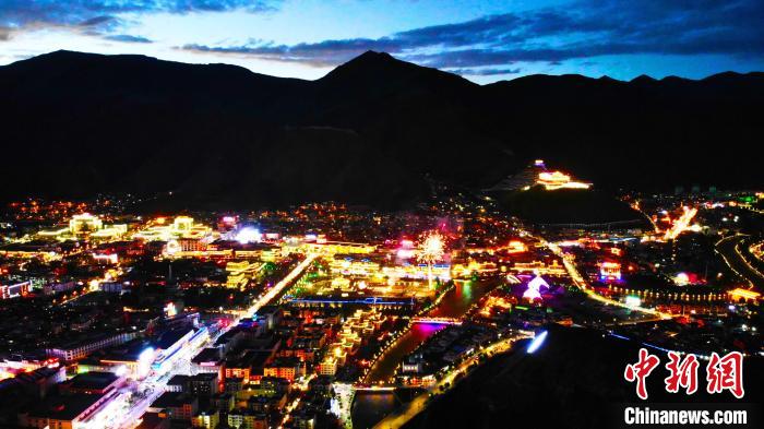 圖為玉樹市夜景。 趙凜松 攝