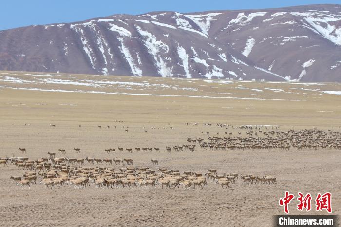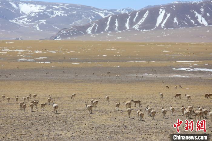 圖為3月27日,西藏改則縣先遣鄉(xiāng)附近的藏羚羊種群?!∵叞?攝