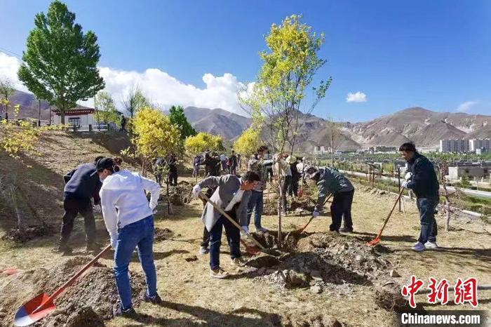 活動組織方在拉薩柳梧新區(qū)植樹?!∥鞑乇本┥虝?供圖