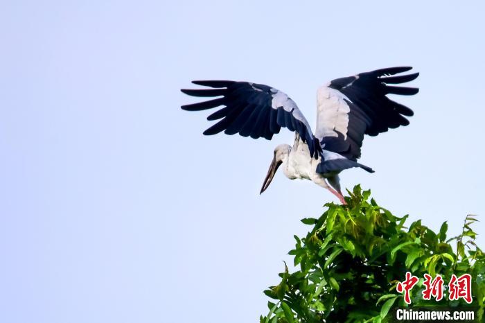 四川省眉山市洪雅縣委宣傳部10日透露,有攝影愛好者在該縣柳江鎮(zhèn)雅女藝術村附近拍到一群灰白色的大鳥,后經(jīng)確認為國家珍稀保護動物鉗嘴鸛,這在當?shù)貙偈状伟l(fā)現(xiàn)和記錄到鉗嘴鸛活動影像。