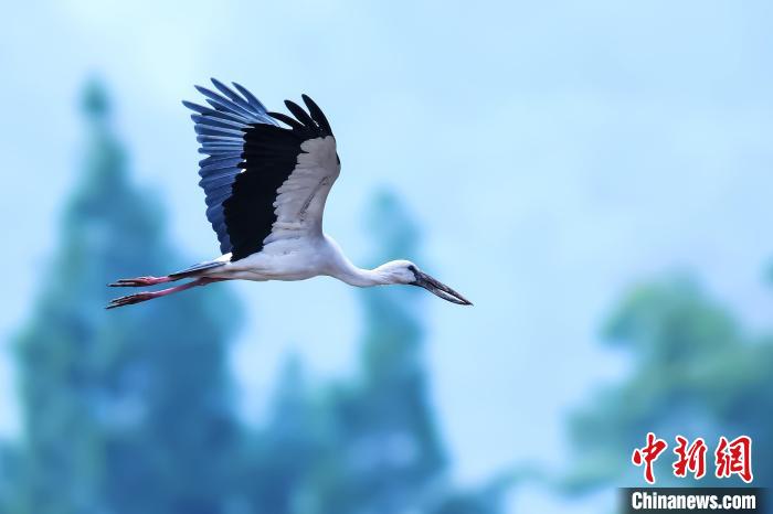 飛翔的鉗嘴鸛。 周學峰 攝
