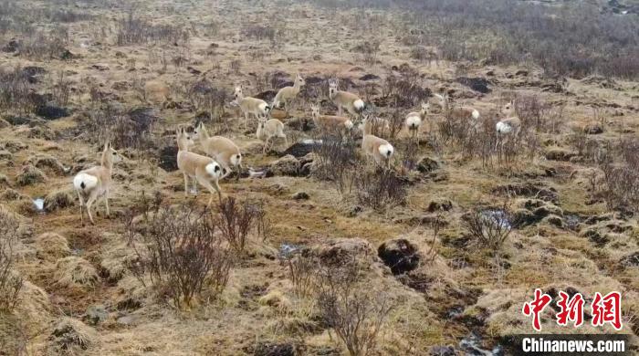 圖為藏原羚種群們?cè)谏狡轮行蓓?。 曹民鍇 攝