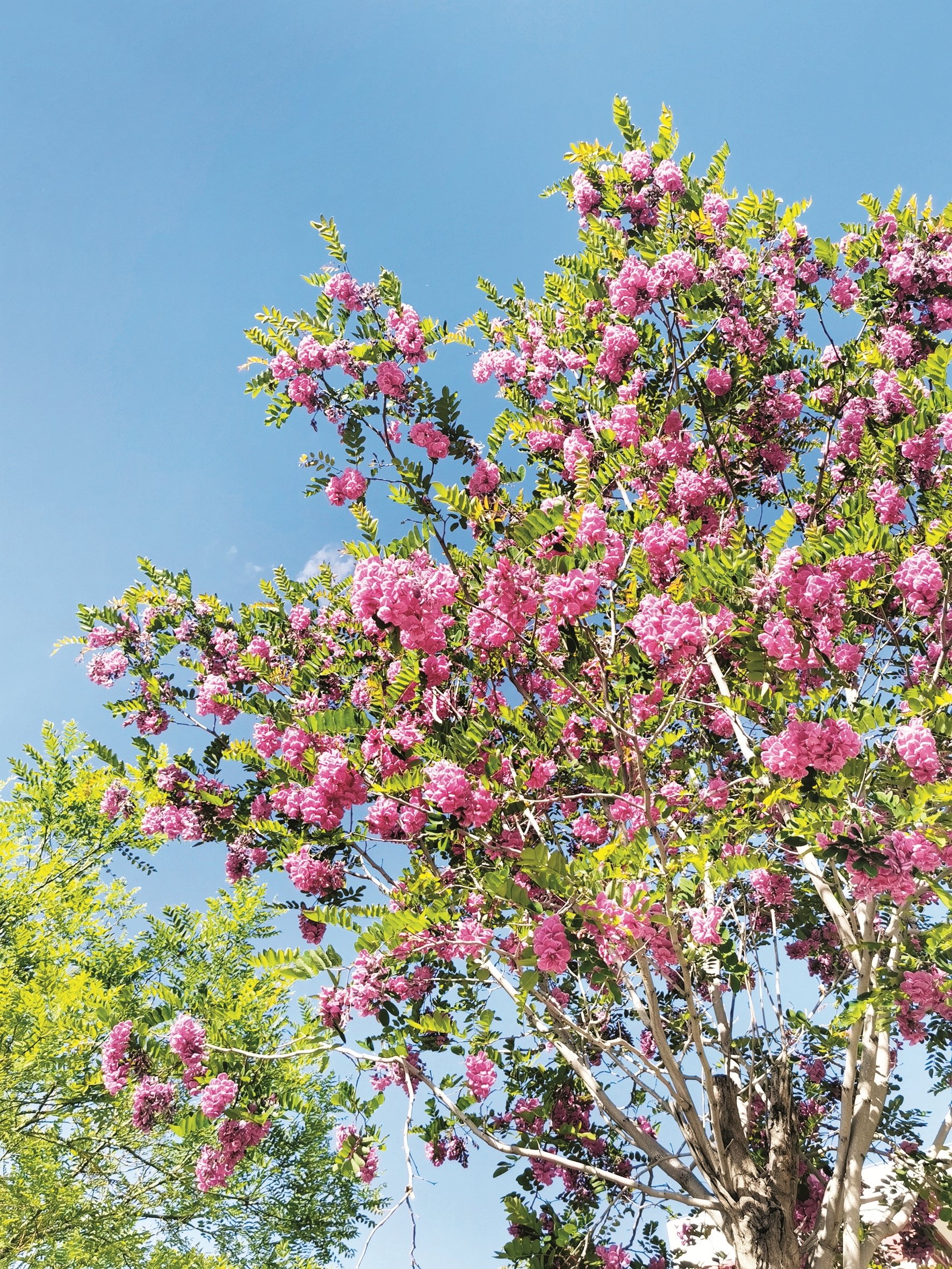 眼下,在拉薩街道邊、公園里,紅色的槐花正在怒放。走在路上,一股清香襲來,讓人頓感心曠神怡。抬頭仰望,紅槐花高高地掛在枝頭,一串串、一簇簇,千朵萬朵隨風(fēng)搖曳、令人如癡如醉。